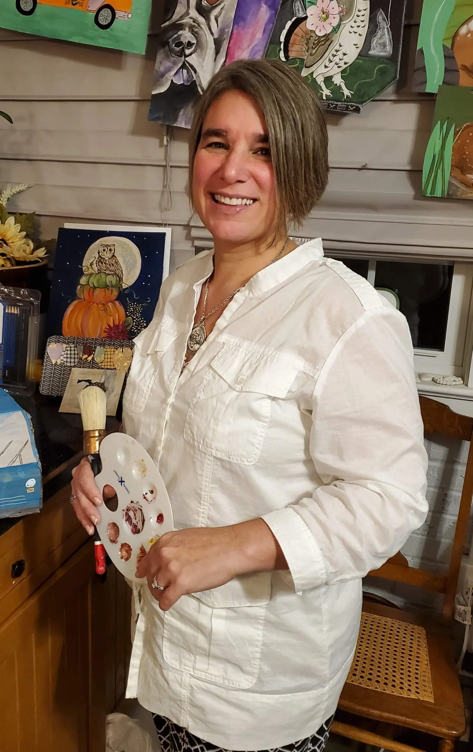 Born and raised in South Central York County in Pennsylvania, Nicole attended Penn State University and holds a Bachelors in Art Education, a minor in Special Education, and is currently pursuing a Masters in Clinical Psychology. Nicole teaches 8th grade Fine Art at Central York Middle School as well as art classes at Creatives on King, the York Art Association, Keystone Kidspace, and Creative York. While oil painting is her passion, she is well practiced in ceramics, watercolor, drawing, linoblock printing, solawood crafting, and sculpture. Nicole owns and operates Reptile Smiles, an educational animal outreach program that combines exotic animals with therapeutic arts and even STEAM programs. As curator at Creatives on King, Nicole works with over thirty local artists and participates in outreach efforts throughout PA to connect with artists in the region. Her work has been displayed in galleries throughout York City, including HIVE Artspace, Creatives on King, and Marketview Arts. Nicole is the Window Artist for Carroll County MD’s Pink Fling, and she creates flower décor for a variety of events.